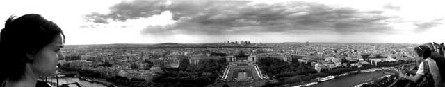 Der Eifelturm von innen heraus. Schwarz-Weiss-Panorama, 130x20cm, 2002